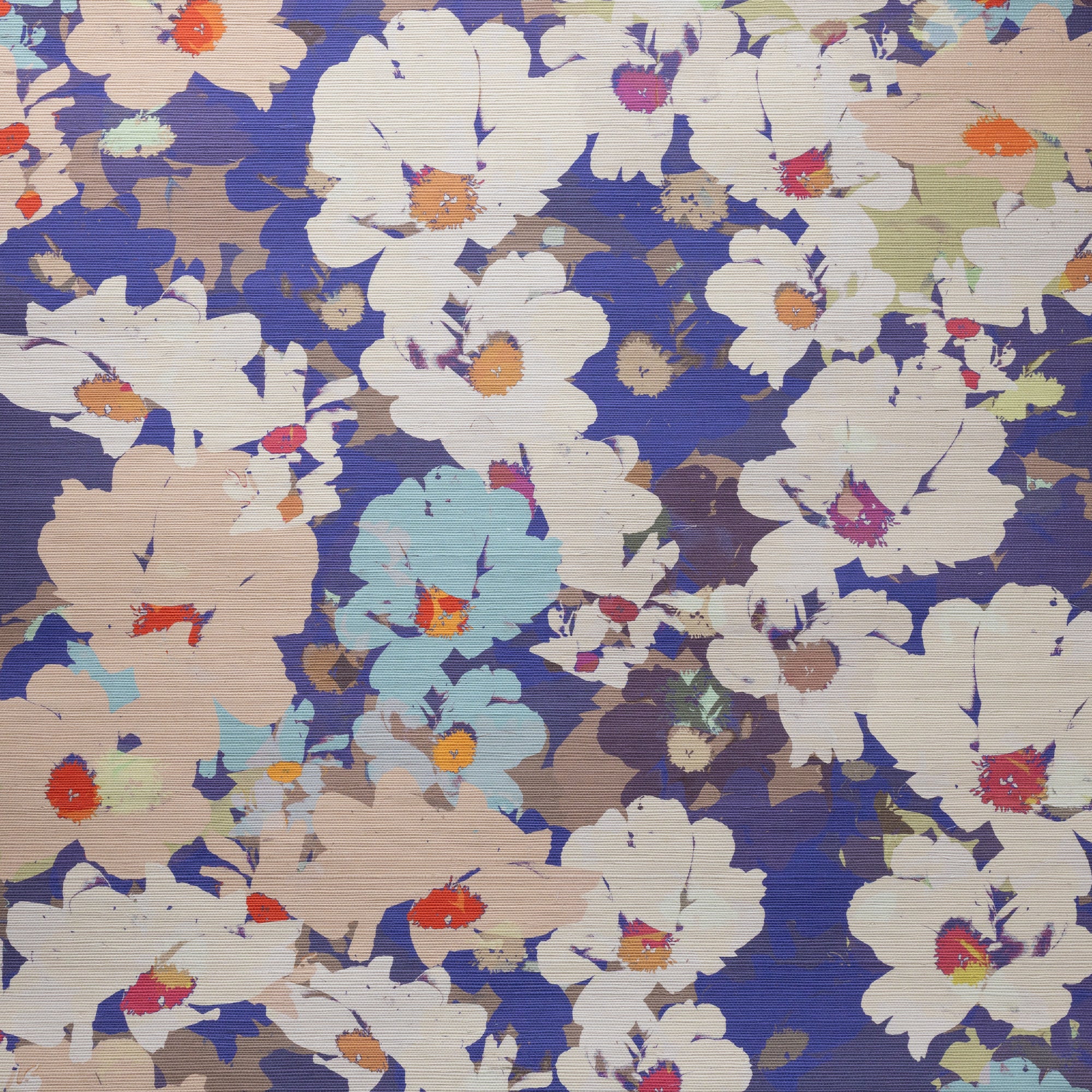 Illustrated flowers in vibrant hues fall across a textural, color shifting background. The result is a floral that speaks to both romantic and contemporary tastes.