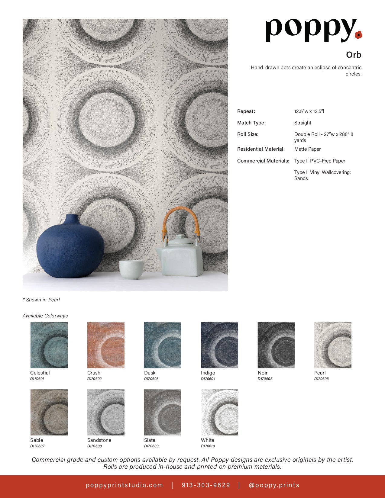 Yes. We work with designers, architects, and purchasing agents on projects of all sizes. Contact us at sales@poppyprintstudio.com with your project scope and quantities for trade pricing. We can also provide project-specific samples, custom colorways, and dedicated account support for large-scale installations.